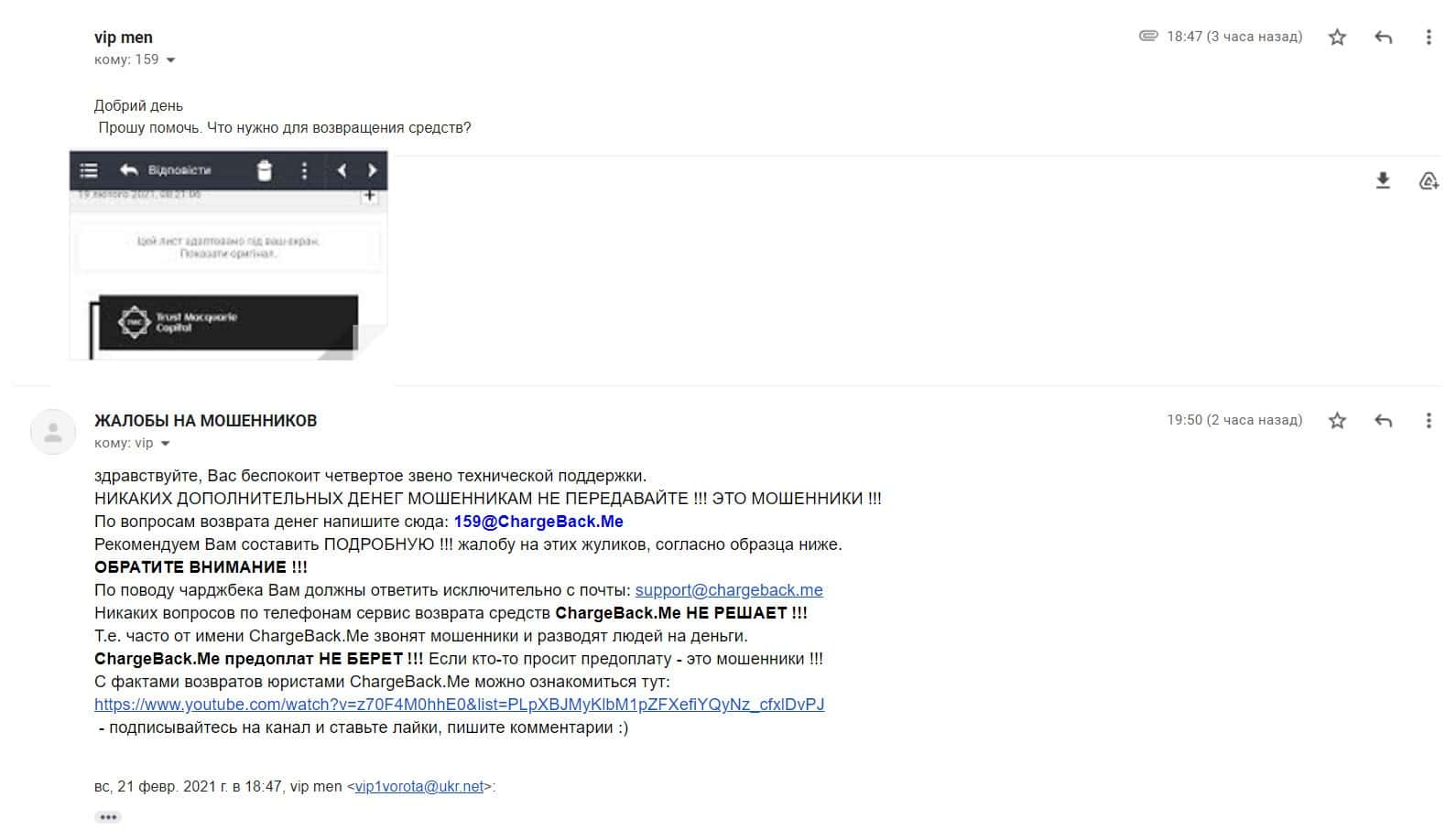 На емайл сайта-разоблачителя пришла жалоба на лохотронщиков Траст М Капитал, которые кинули клиентку на 19 107 гривен, заставляя дополнительно оплатить страховку.
