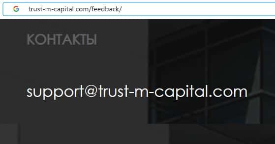 Лохотронщики Траст М Капитал на своем официальном интернет-ресурсе указывают адрес электронной почты, а именно: