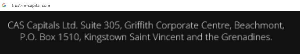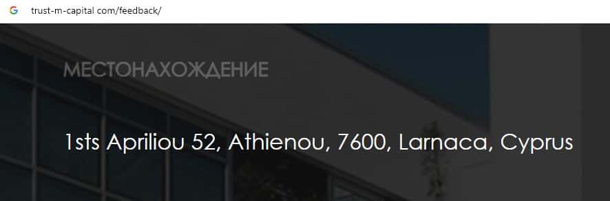 Мошенники Trust M Capital указали адрес местонахождения главного офиса своей компании, который наверняка липовый: