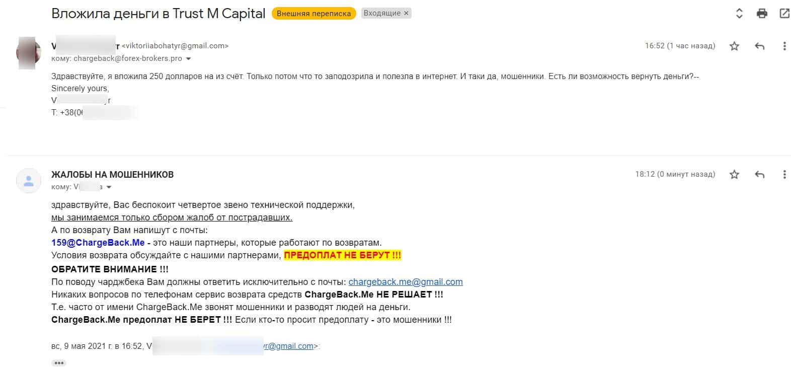 - Жулики Траст М Капитал кинули клиентку на 2500 долларов США