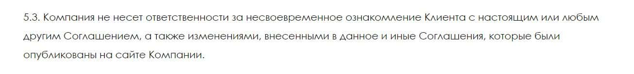 Скам-организация Траст М Капитал вправе изменить любой из пунктов клиентского соглашения, за своевременное ознакомление клиента с которым ответственности не несет.