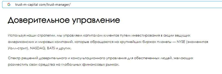 Услуги предлагаемые на интернет-сервисе шараги Trust M Capital