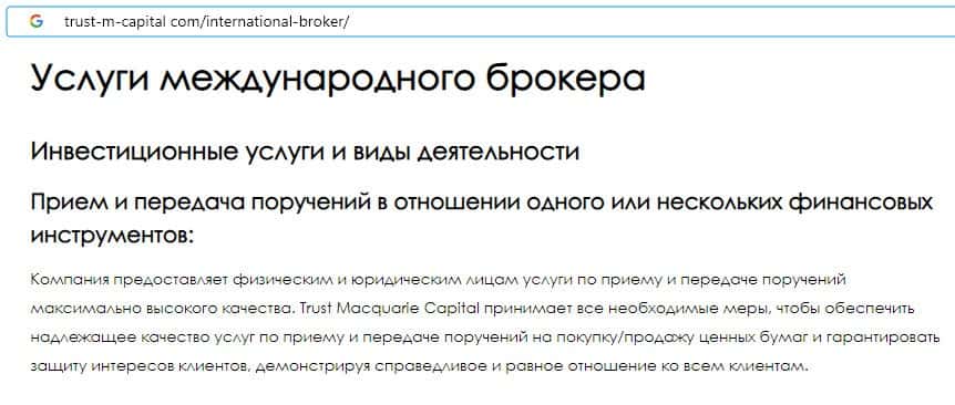 trust-m-capital com - официальный онлайн-сервис конторы Trust Macquarie Capital