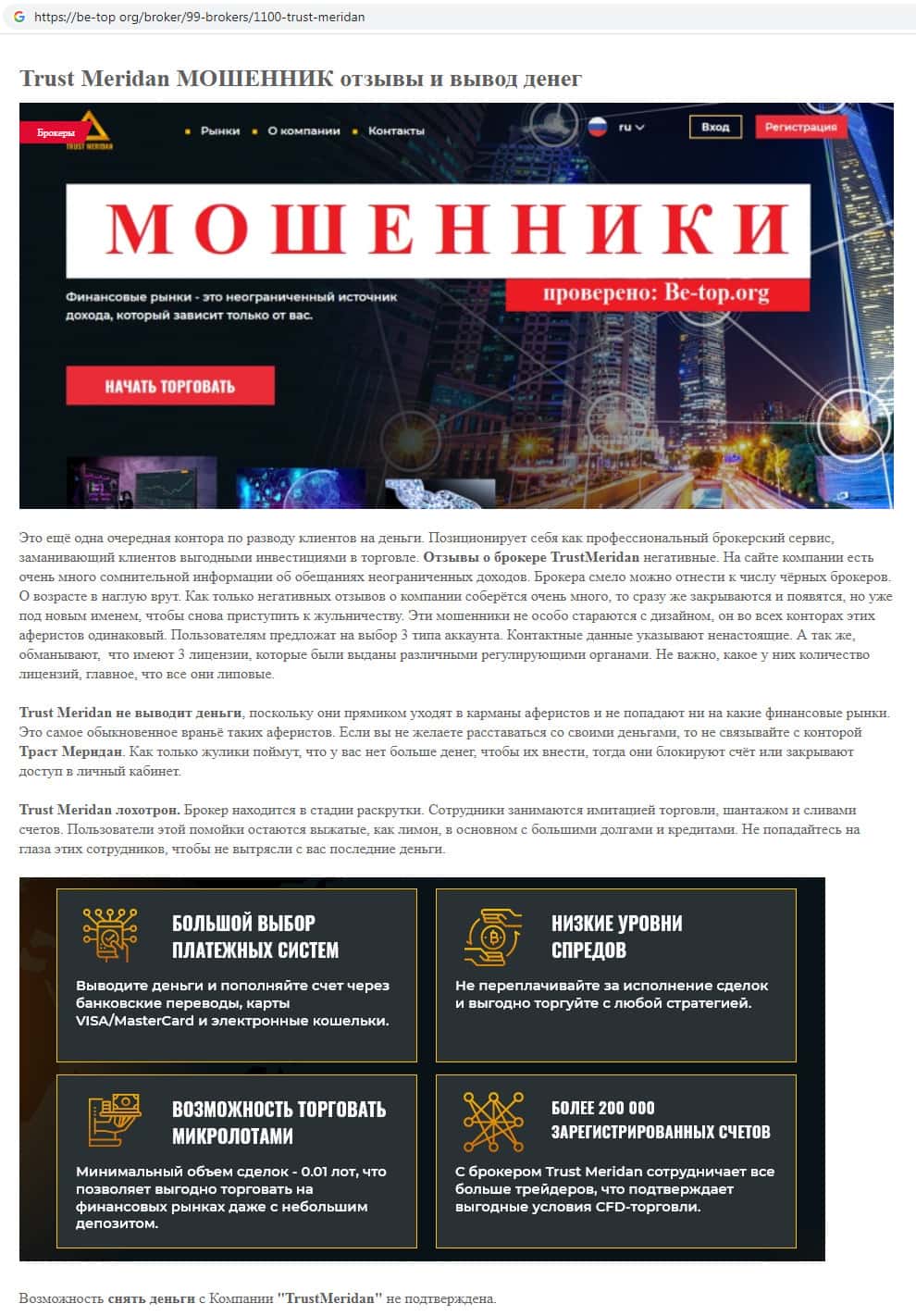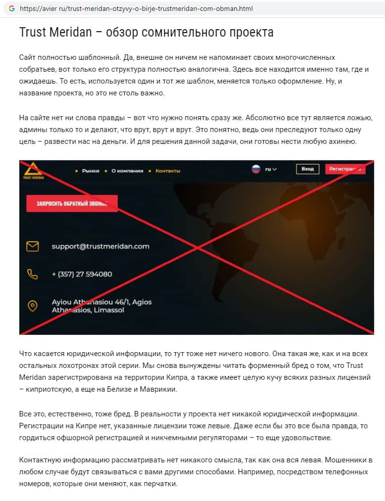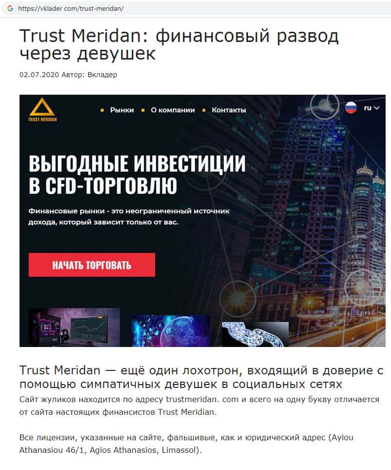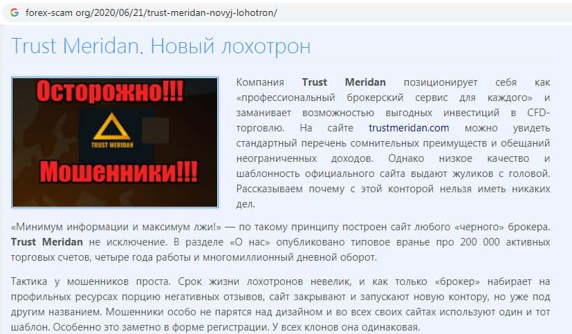 - Информация о мошеннической организации Trust Meridan