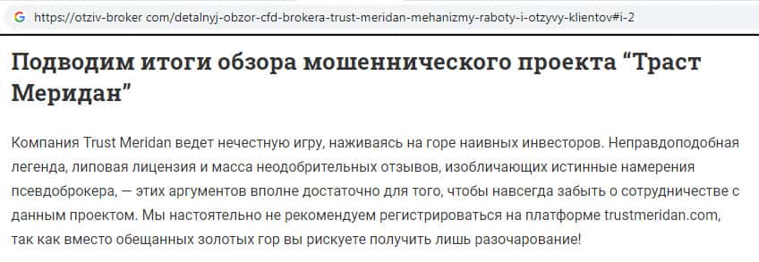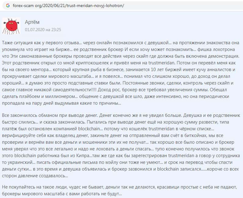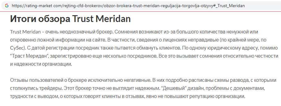 - Trust Meridan - обзоры мошенников на других интернет-порталах
