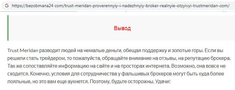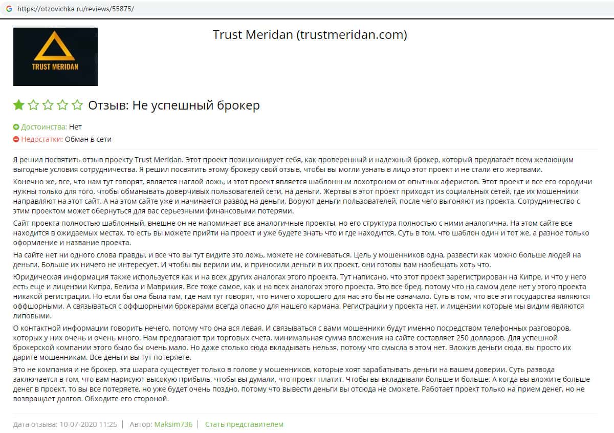 Отзывы о фейковой конторе Траст Меридан, ныне присутствующие в сети