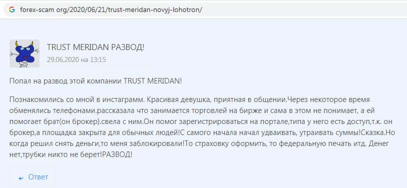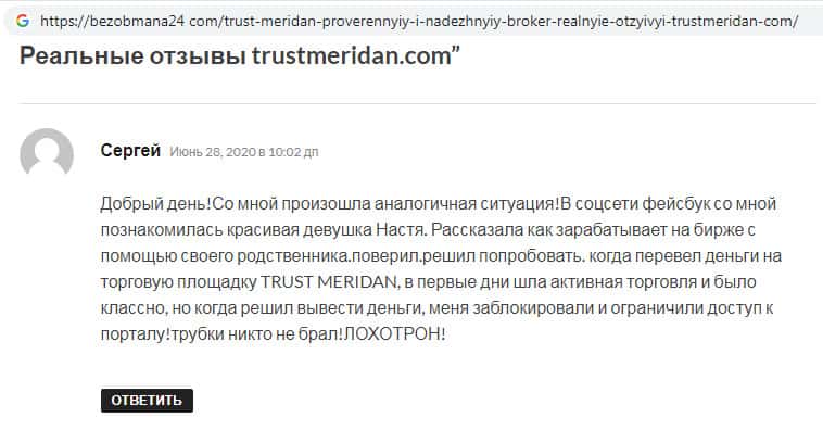 Trust Meridan - обзоры мошенников на других интернет-порталах