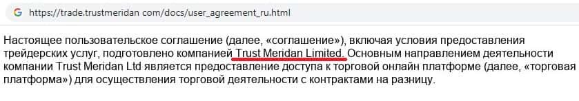 Информация о мошеннической организации Trust Meridan