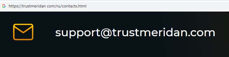 Шулера Траст Меридан на своем официальном интернет-ресурсе указывают два адреса электронной почты, а именно: