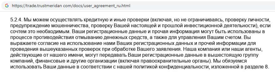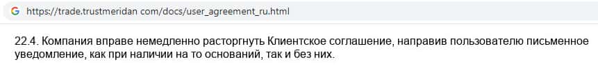 Клиентское соглашение на сайте псевдо-брокерской конторы Траст Меридан