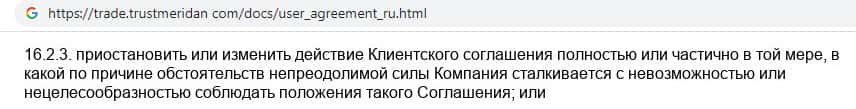 Аферисты TrustMeridan имеют право изменять правила пользования сайтом без предварительного уведомления об этом пользователей сайта.