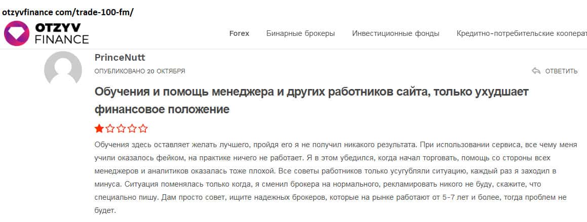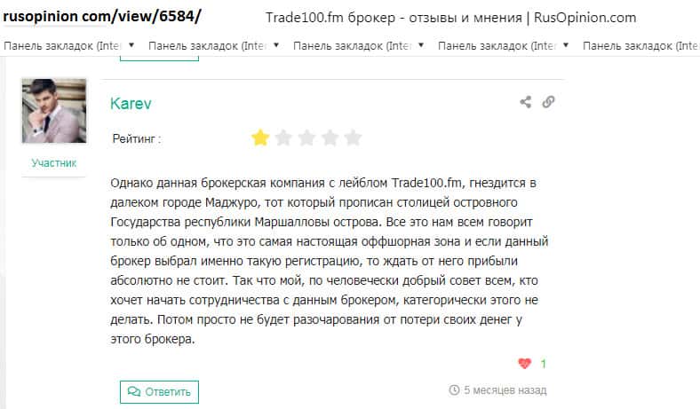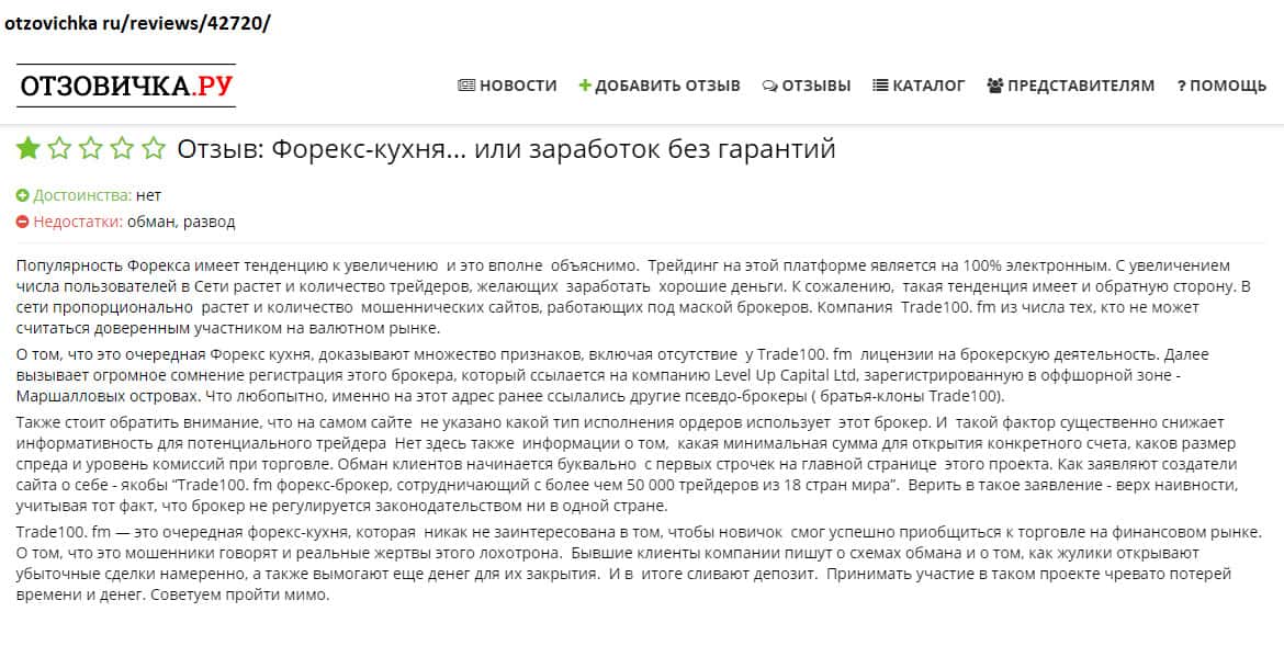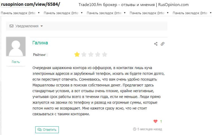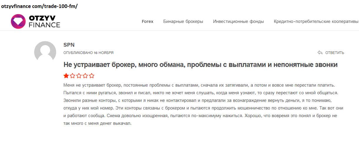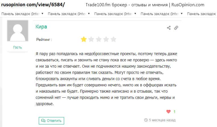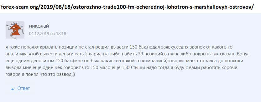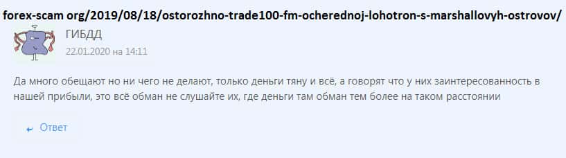 Черная репутация недо брокера Trade100FM известна многим пользователям сети!