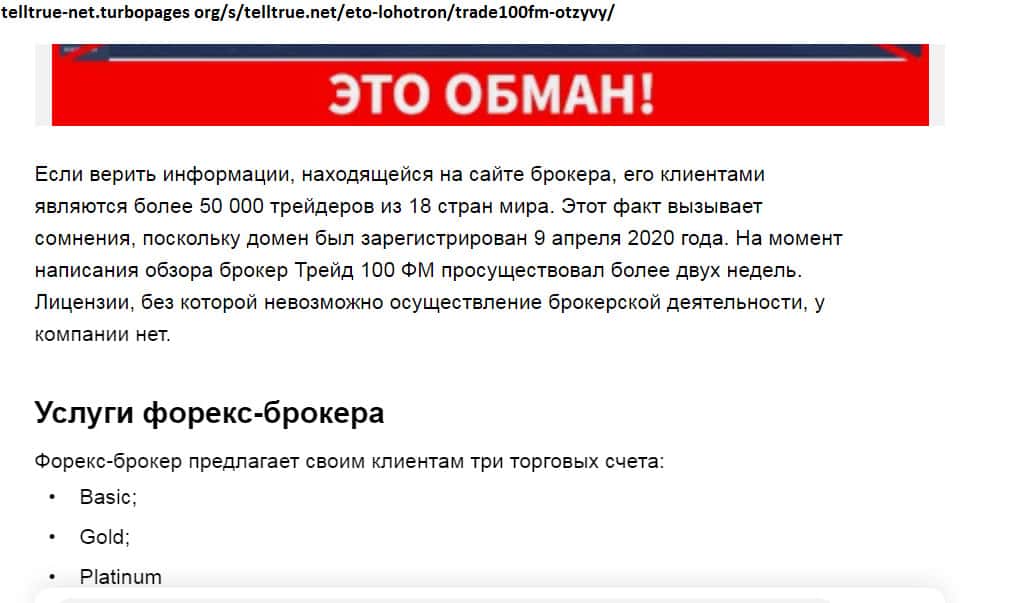 - Лохотронщики Трейд 100 ФМ не утруждаются, чтобы замаскироваться под порядочного брокера!