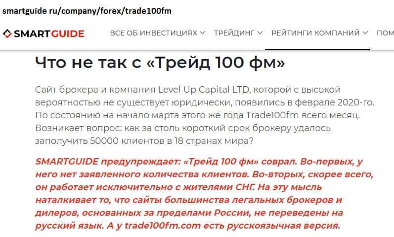 - Мошенники Trade100FM утверждают, что количество их клиентов превышает 50 000 человек!