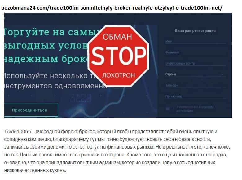 Лохотронщики Трейд 100 ФМ не утруждаются, чтобы замаскироваться под порядочного брокера!