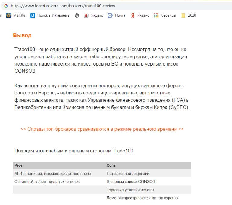 Перевод аналитической статьи о жуликах Trade100FM на сайте forexbrokerz com.