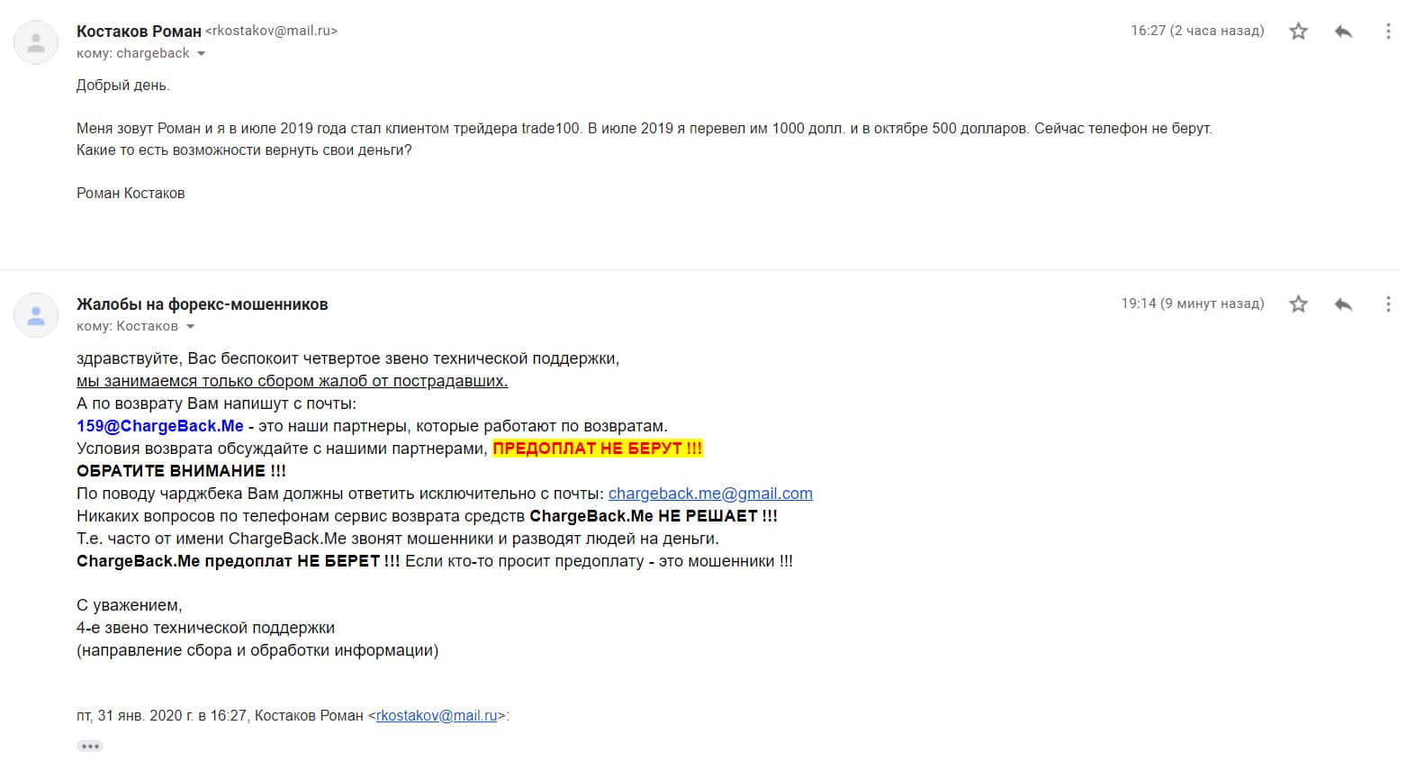 Относительно возможностей вернуть свои вложенные деньги от МОШЕННИКОВ Трейд 100 - напишите запрос на мыло: [email protected]