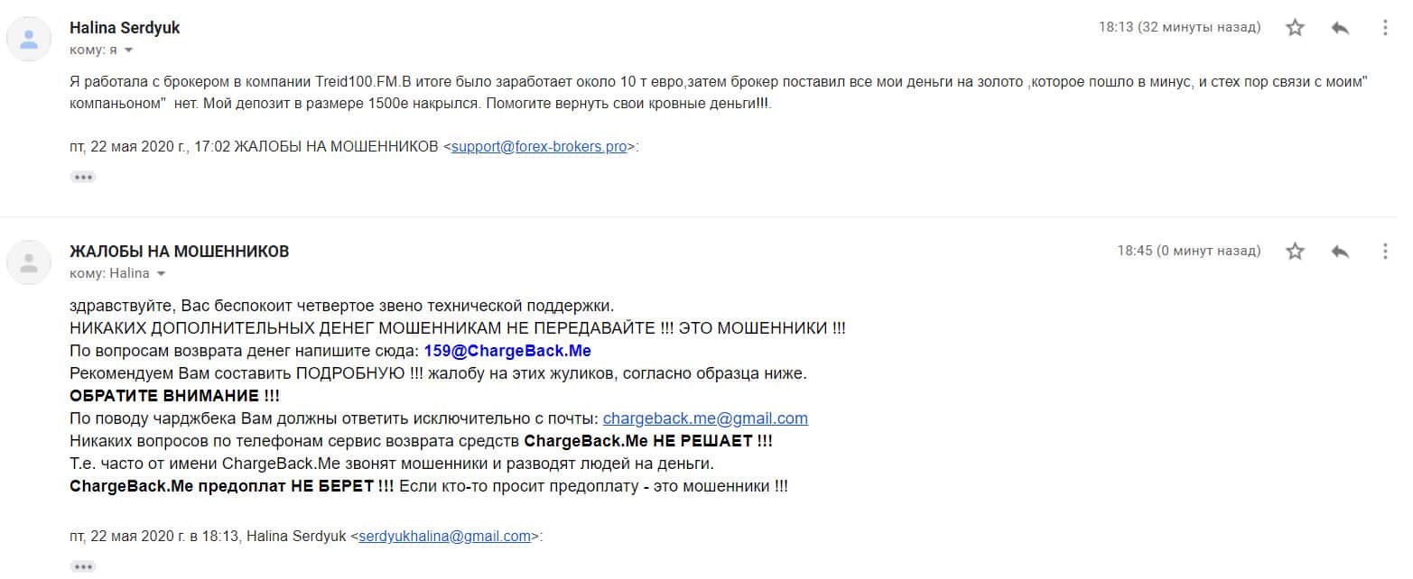 Жалоба на мошенников Trade 100 FmМошенники Трейд 100 кинули клиента на 1 500 евро