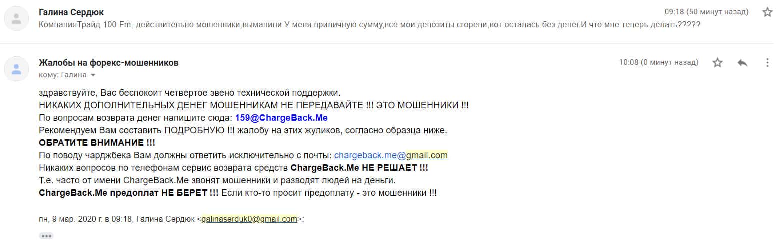 Аферисты Трейд100ФМ кинули клиента на 10 000 рублейЖалоба на мошенническую организацию Трейд 100 Фм