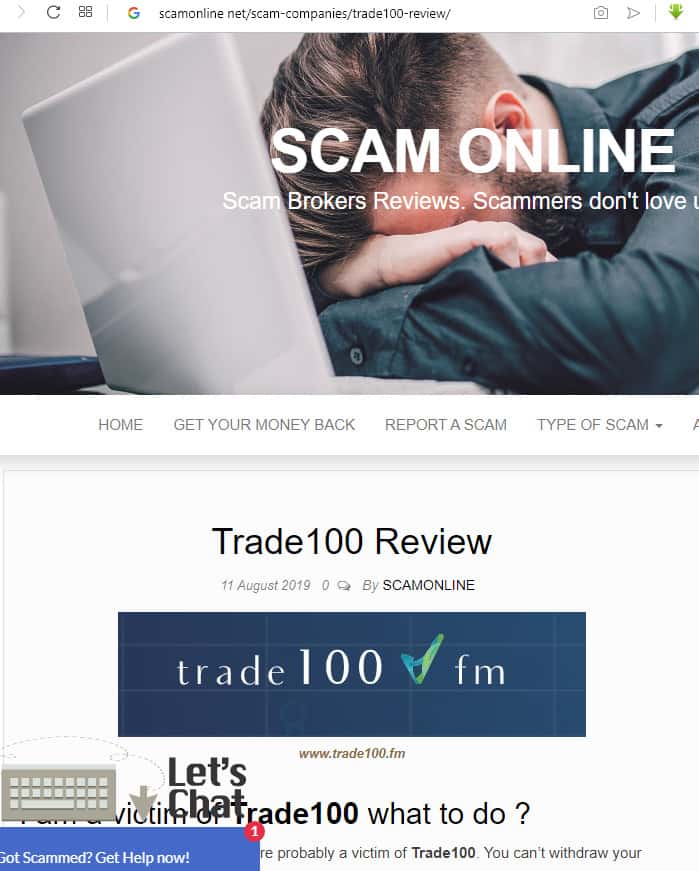 Жалоба на скаммерскую контору Трейд 100 ФмПредупреждение о жуликах Trade100 fm на портале forex-scam org