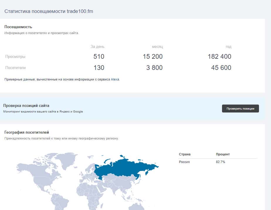 Анализ трафика сайта Trade100 fmВместо знакомства, не мешкая, регистрируйся в Trade100 fm