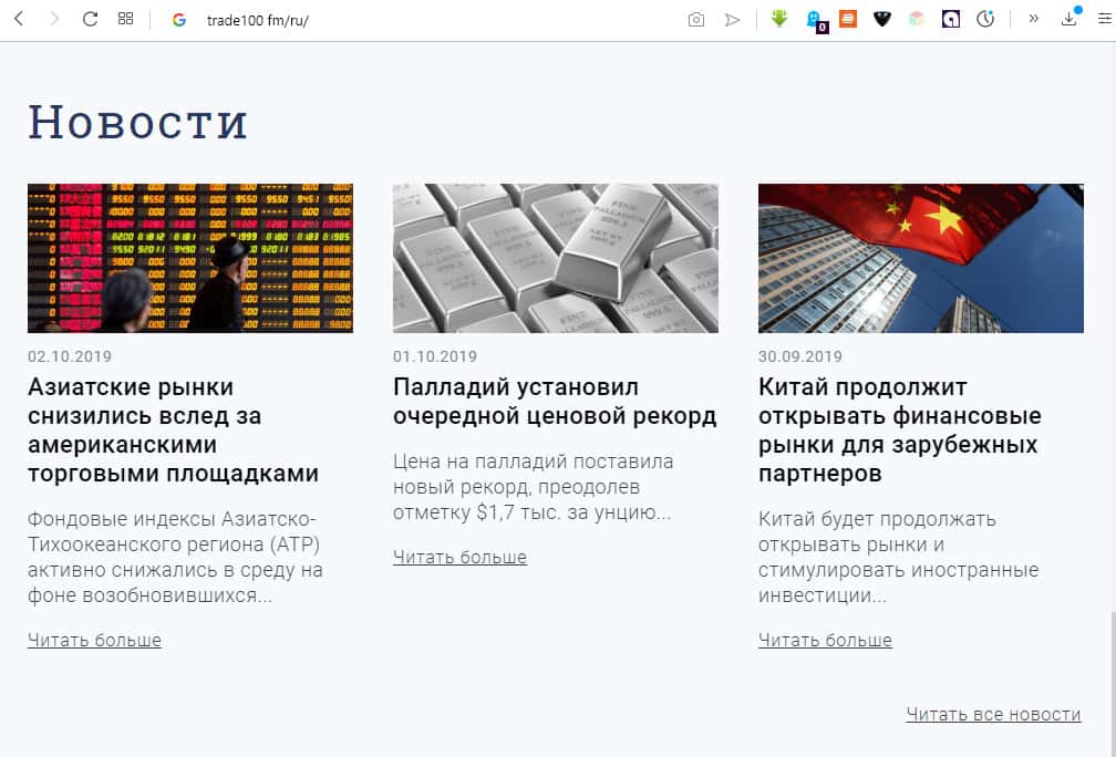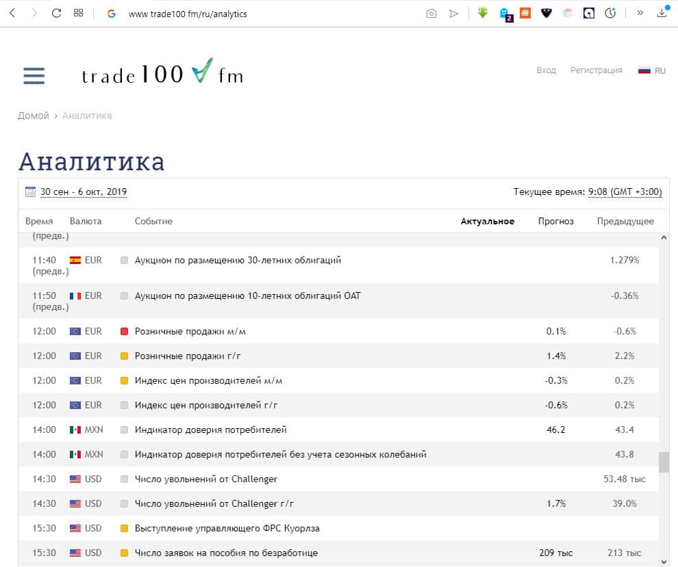 Раздел Обучение на сайте Трейд100 фм Так же к справочным материалам можно отнести и раздел "Аналитика", который содержит лишь виджет экономического календаря, позаимствованный на портале mql5 com и подборку новостей. Интересная деталь этого собрания новостей. Почему-то наблюдается несоответствие новостей в данном разделе с новостями на главной странице ресурса.