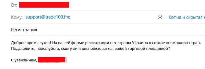 Адрес мошенников из Trade100 fm в сети ИнтернетЖалоба на Trade 100 Fm от клиента, отправившего аферистам 24 000 $
