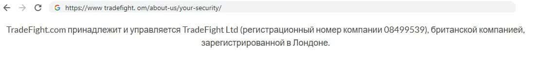 Юридическое лицо, владеющее сайтом мошенников TradeFight - еще одна контора жуликов под названием TradeFight Ltd.