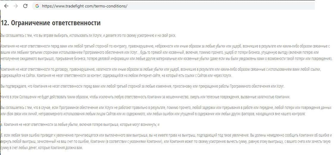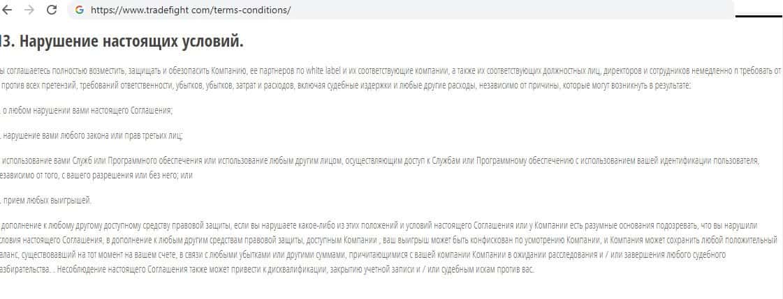 Далее скрин договора мошенников Трейд Файт на языке оригинала.