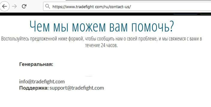 В случае, если жулики из Трейд Файт Вас кинули, то в таком случае обязательно расскажите об этом нам. Оставьте Ваш е-майл в форме обратной связи чуть далее, с Вами установят контакт.