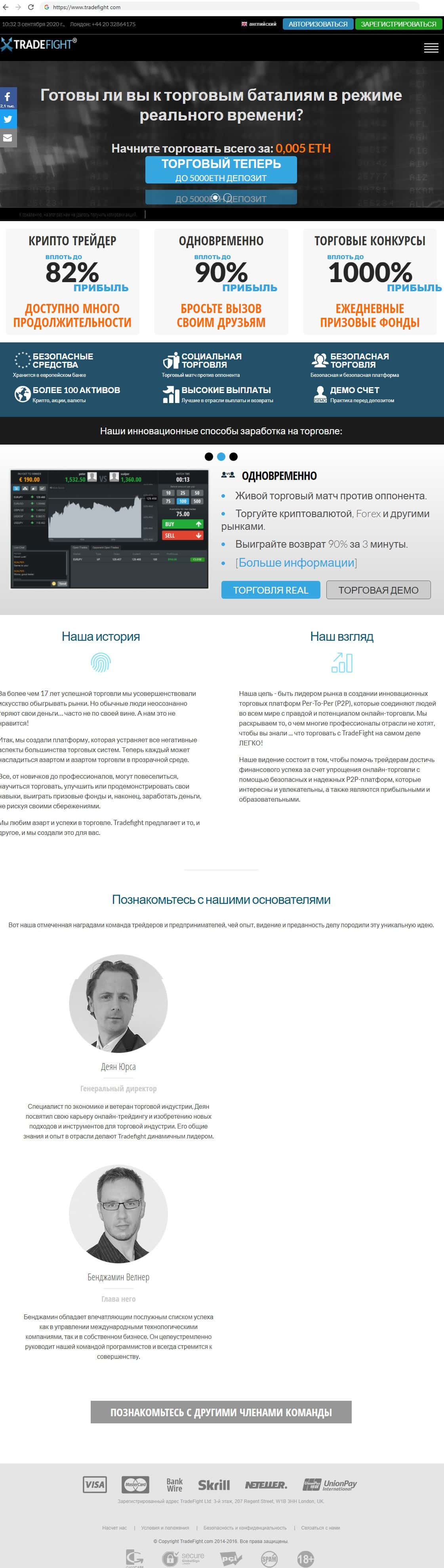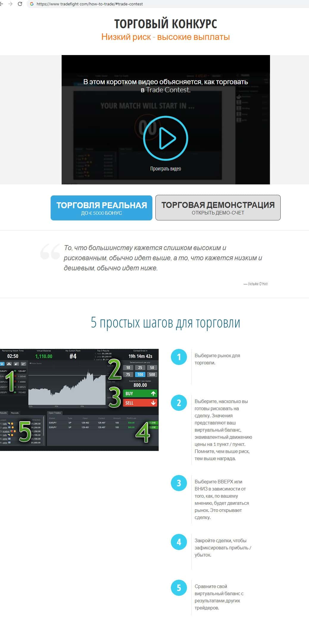 Что можно увидеть на главной странице сайта Трейд Файт?
