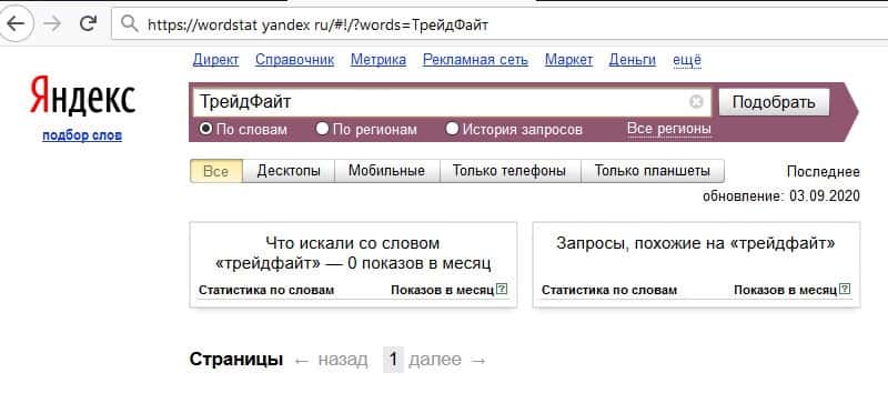 - Статистика запросов о лохотроне в поисковике Яндекс TradeFight