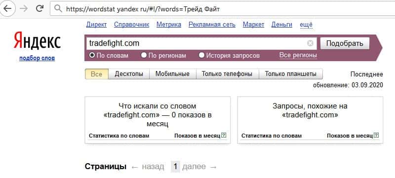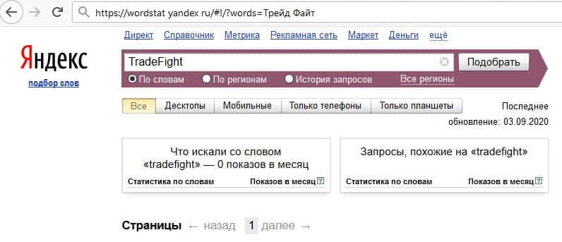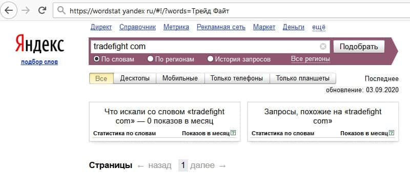 Полное имя домена "tradefight.com" с точкой долго набирать в поисковике Яндекса никто не захотел.