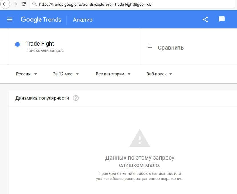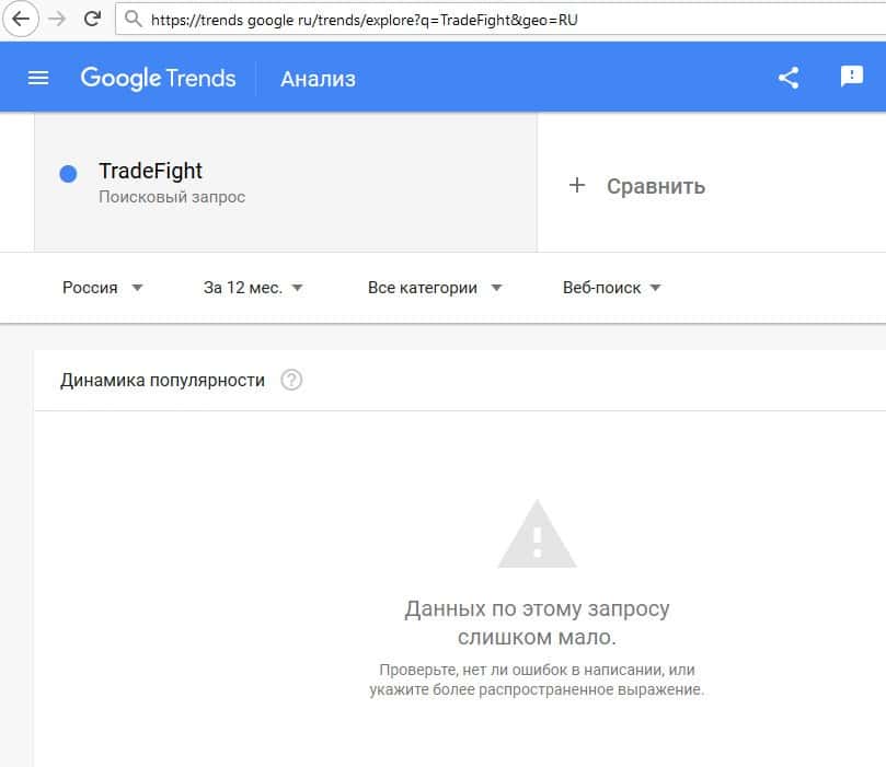 Им больше известно написание названия сайта как "Trade Fight" с пробелом между словами - его ищет более 50 будущих клиентов мошенников каждый месяц.