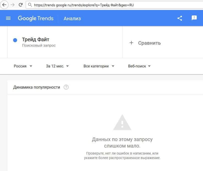 Название лжеброкера "Трейд Файт" на русском языке в среднем заманивает на сайт три потенциальные жертвы за месяц.