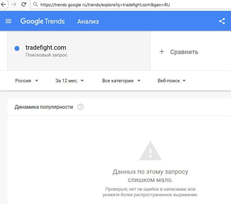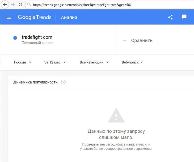 Не меняется статистика при использовании имени домена "tradefight com", введенного в Гугле без точки.