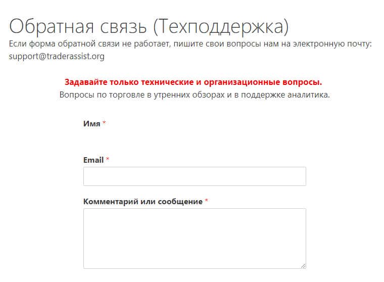 Второй способ связи с аферистами и жуликами TraderAssist - это форма обратной связи. Через нее они собирают ваши персональные данные, чтобы потом использовать их.