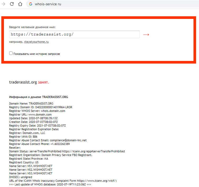 Небольшой анализ сайта конторы TraderAssist сразу показал, что данные о владельце домена отсутствуют. А это уже явный признак лохотрона.