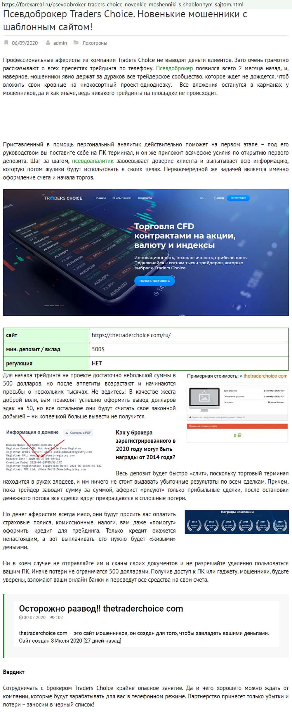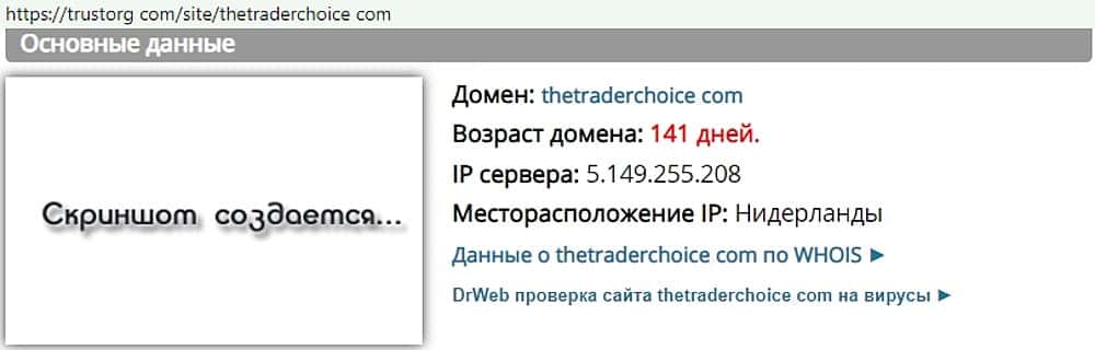 - Возраст мошеннического веб-проекта TheTraderChoice