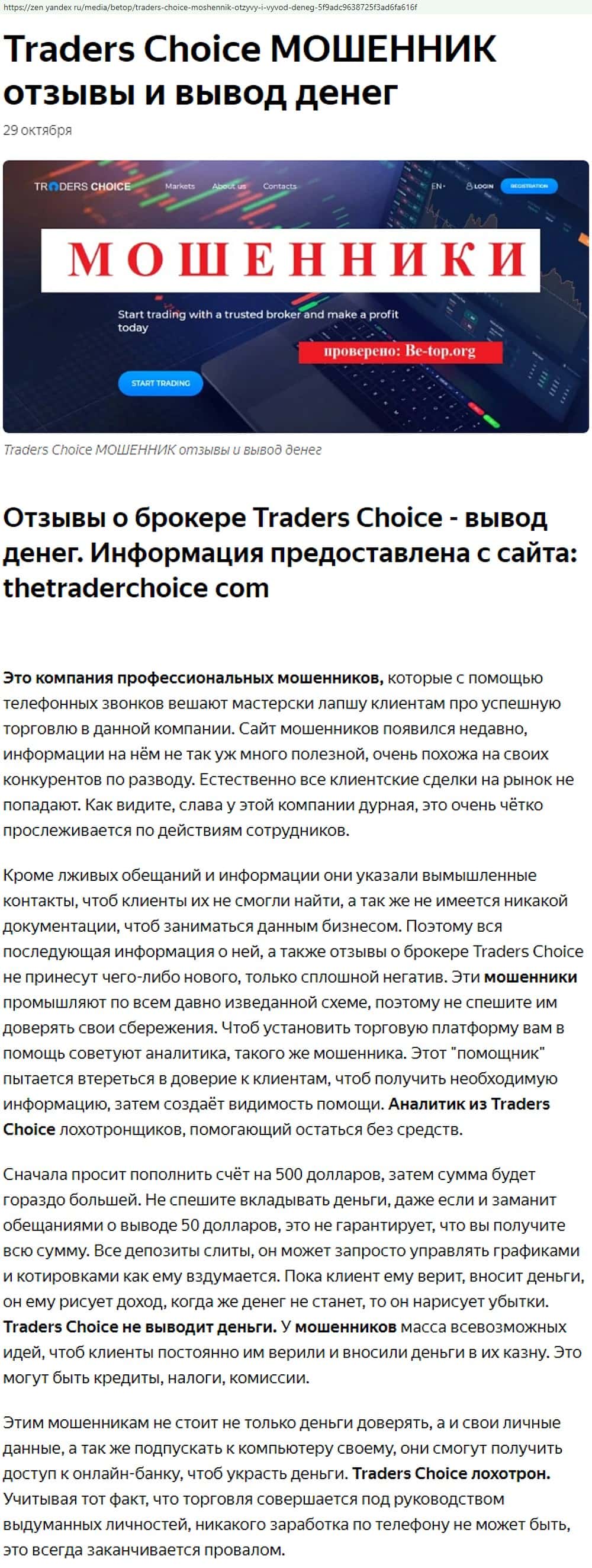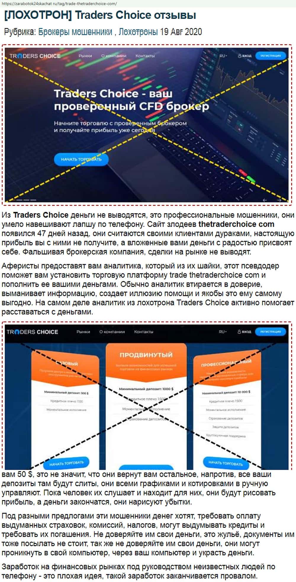 - Внешний вид позорного веб-лохотрона Трейдер Чойс