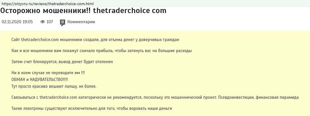 - Пользователи интернета распознают в веб-проекте thetraderchoice com лохотрон