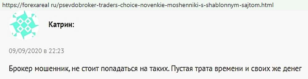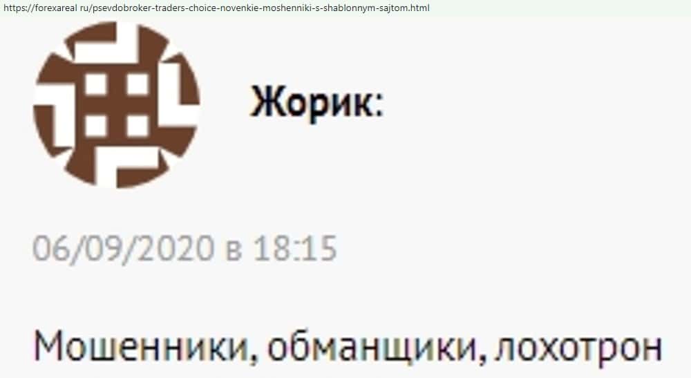 А кому-то, достаточно и трех слов, чтобы кратко и четко охарактеризовать, чем на самом деле является веб-сервис Трейдер Чойс, ворующий деньги: мошенники, обманщики, лохотрон.