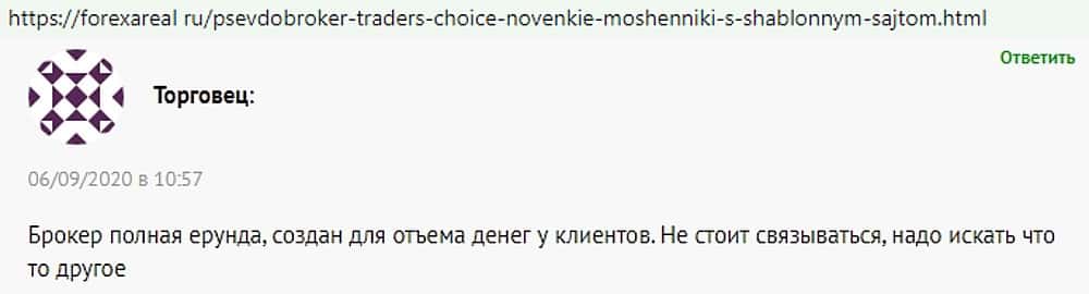 Интернет-разводняк Трейдер Чойс не выводит деньги клиентов
