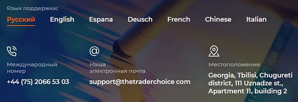 Контактных данных аферюги Трейдер Чойс предложили вроде бы немало. Это и телефон, и электронная почта, и адрес. Но, обычно форекс-шулера, любят все это просто придумывать: