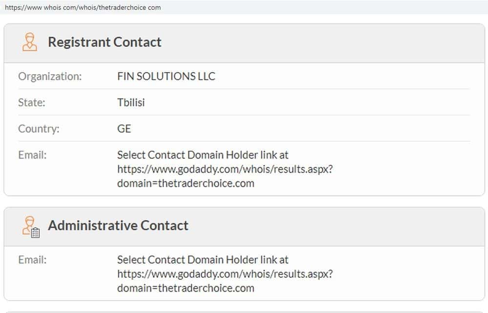 Пройдохи TheTraderChoice указали, что их позорный сайт управляется некой организацией, которая называется FIN SOLUTIONS LLC., но это может быть и просто выдумка мошенников.