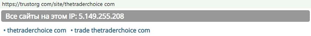 - Кто соседствует с аферой TheTraderChoice по IP-адресу