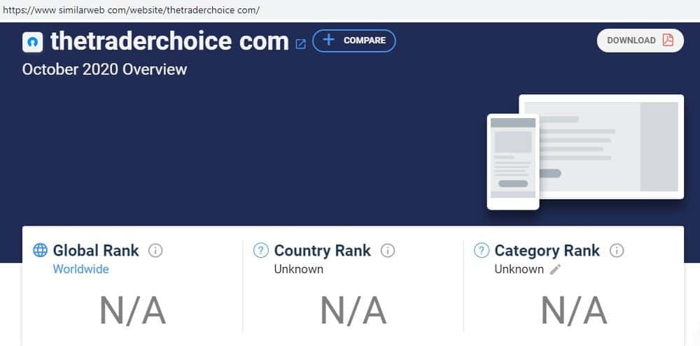 По данным веб-платформы симиларвеб ком, лоховоды Трейдер Чойс вообще никого не интересуют. Входящего трафика настолько мало, что сервис не может определить его источник.