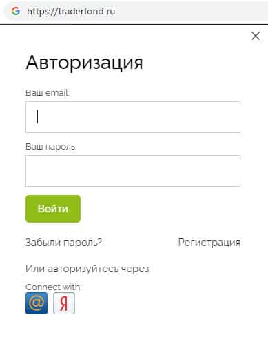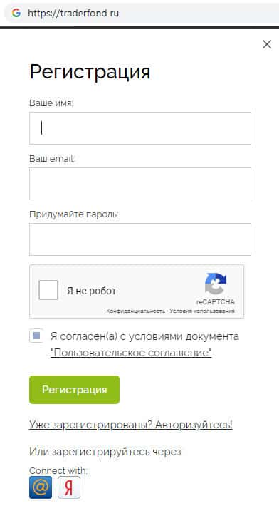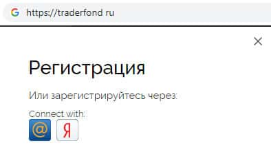Аферисты TraderFond Ru так же предлагают зарегистрироваться через Российские социальные сети, а именно: почта mail ru и yandex. Якобы под предлогом того, что это очень просто, нажал ярлык и все готово. Не забывайте, что мошенники Трейдер Фонд фиксируют все данные, которые указаны на страничках пользователей.