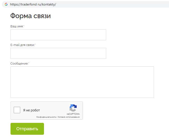 Скам-контора Трейдер Фонд на своем официальном сайте ведет сбор данных о клиенте и предоставляет бланк под предлогом якобы возможности обратной связи на сайте, обещая после чего связаться с пользователем. Данный бланк для сбора данных о пользователях не такой уж и безобидный, как кажется на первый взгляд.