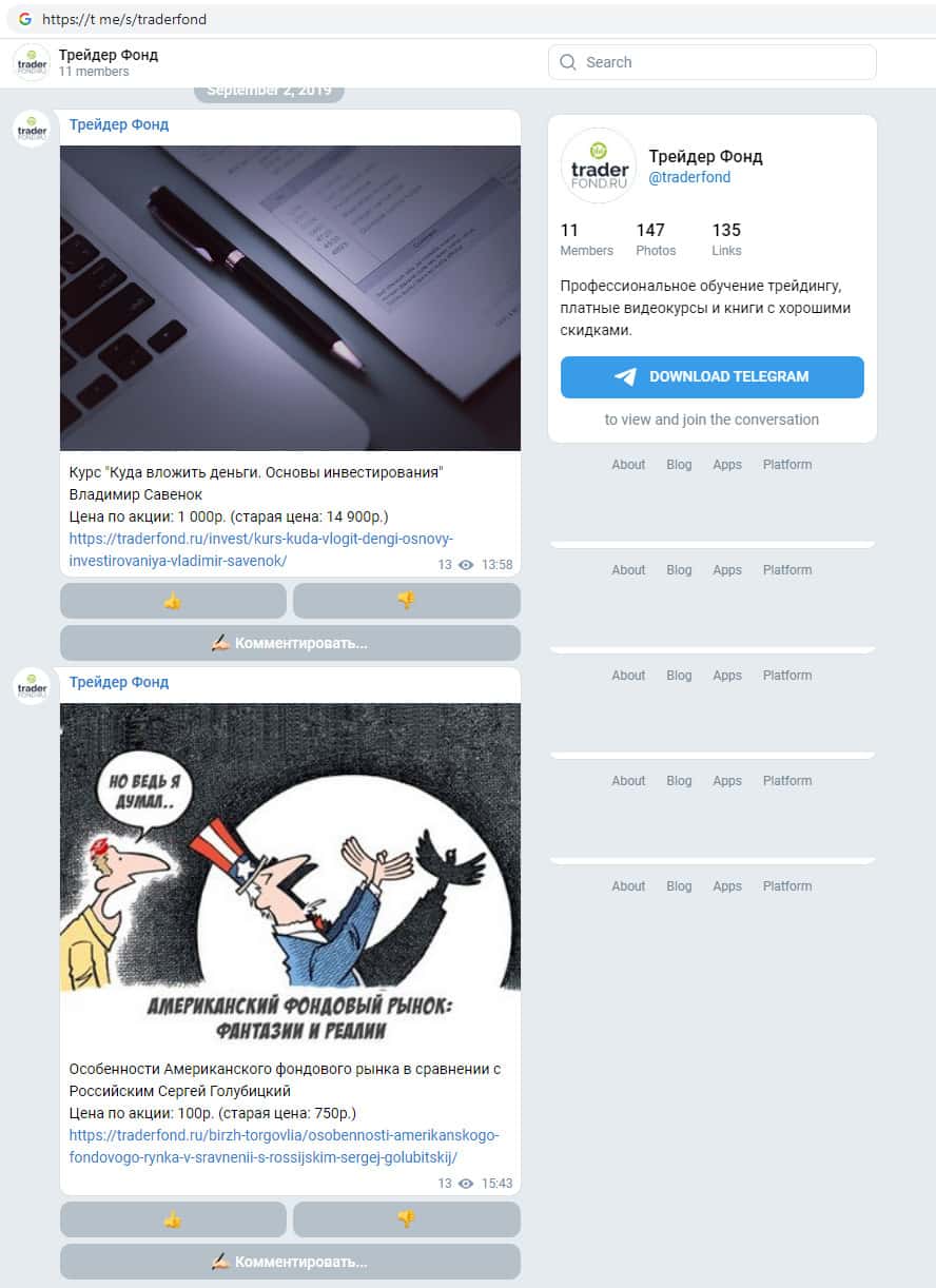 - Мошенники Трейдер Фонд рекламируют свою компанию в социальной сети Телеграм